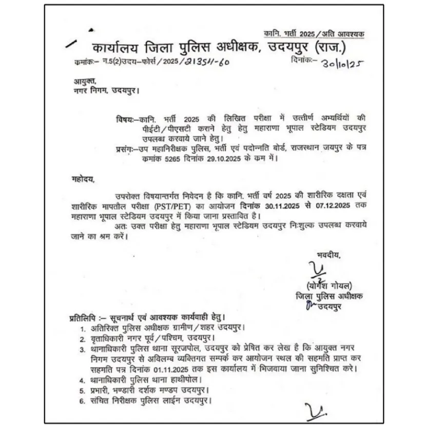 लेटेस्ट न्यूज़ के अनुसार आपको बता दे की राजस्थान पुलिस कांस्टेबल भर्ती में 5 लाख से अधिक आवेदन फॉर्म भरे गये थे वही पर 13 और 14 सितंबर 2025 को परीक्षा में 3.76 लाख अभ्यर्थियों ने भाग लिया था इसके बाद में लिखित परीक्षा का परिणाम और कट ऑफ लिस्ट को एक साथ में जारी किया जाएगा अतिम रूप से चयन के लिए 50,000 अभ्यर्थियों को फिजिकल टेस्ट (PST/PET) के लिए बुलाया जाएगा इस लिए जिनके 70+ अंक बन रहे हैं, उन्हें फिजिकल तैयारी शुरू कर देनी चाहिए।